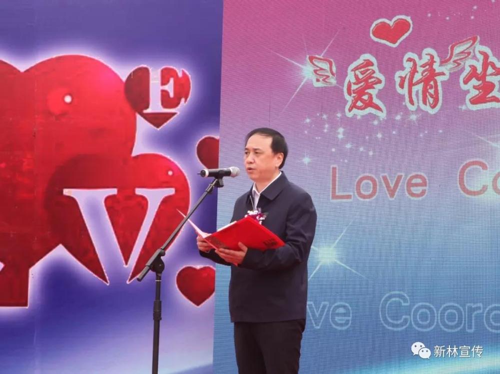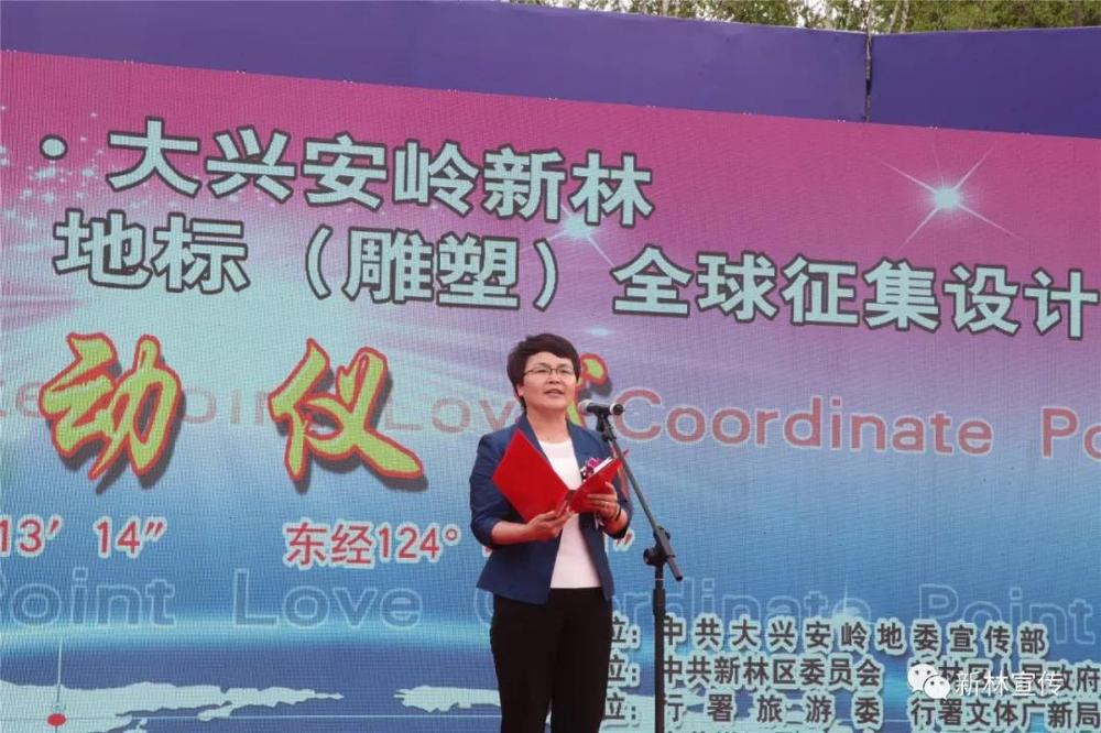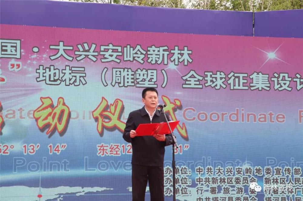 图为新林区委副书记、区(局)长林建军在启动仪式上发布《中国·365777.com新林征集“爱情坐标点”地标(雕塑)设计方案的公告》 徐晶 摄